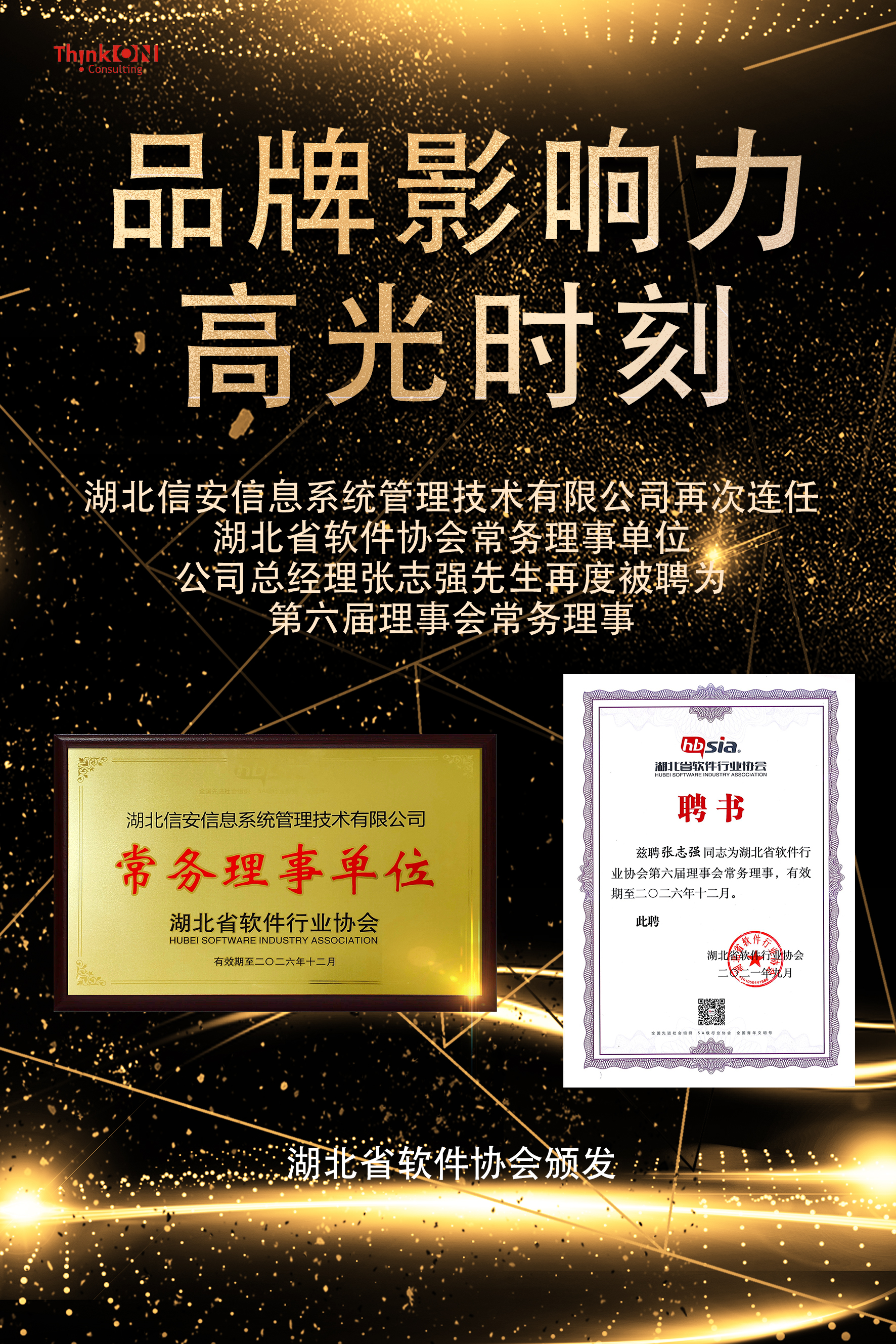 再獲殊榮!湖北信安及公司總經理張志強先生分別連任省軟協常務理事單位及常務理事